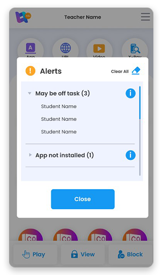 To simplify the means of keeping students ‘on-task’ and controlling content playback, it was decided that the class would be limited to one app, URL or video task at a time.