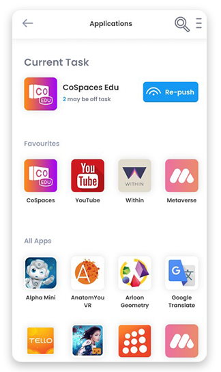 The retirement of Google Expeditions saw a need for Lumination to custom build a solution that would enable teachers to push out VR experiences from the teacher device to the student devices included in Lumination’s AR/VR Education Kit. This also presented an opportunity to develop some additional features that would make the use of emerging tech in the classroom more accessible.